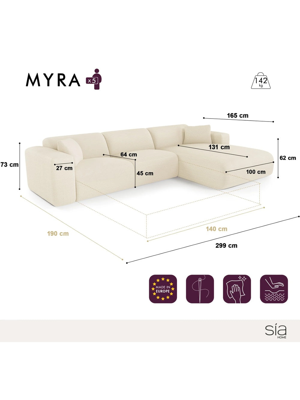 Le canapé Myra angle droit convertible express avec matelas Dunlopillo combine élégance, confort et fonctionnalité pour un salon moderne. Son format généreux offre une assise profonde et un couchage pratique pour recevoir des invités.