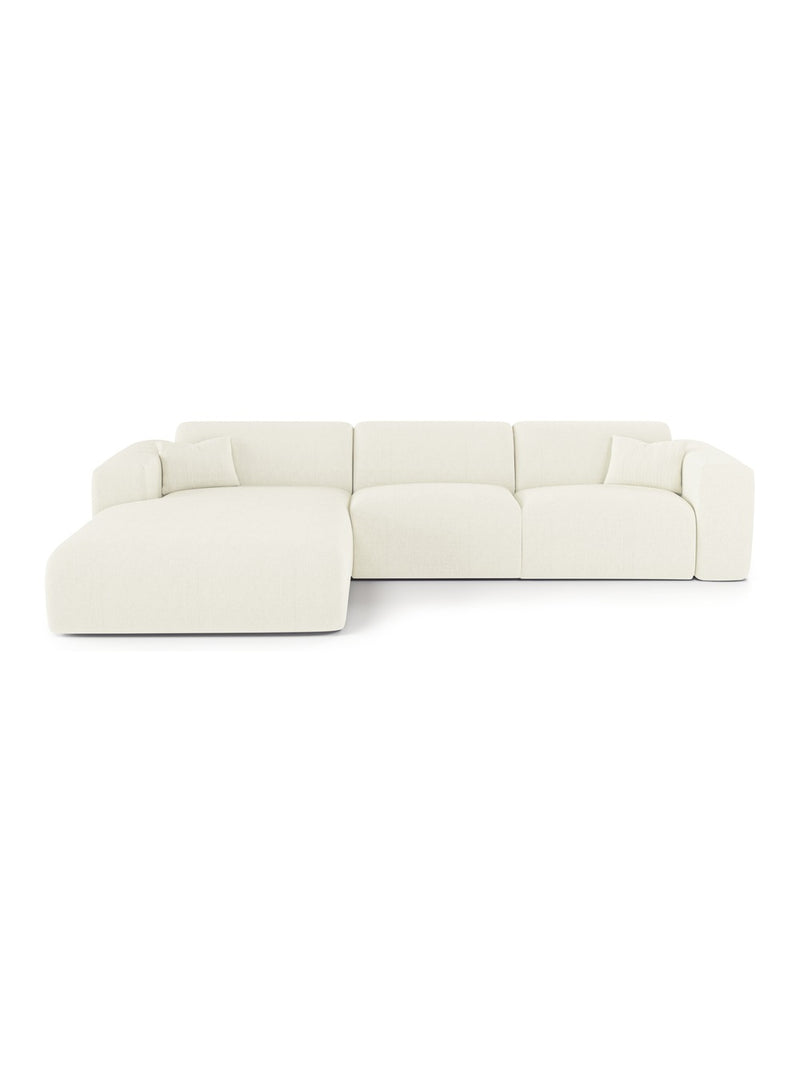 Canapé angle gauche convertible 140cm en velours côtelé crème MYRA